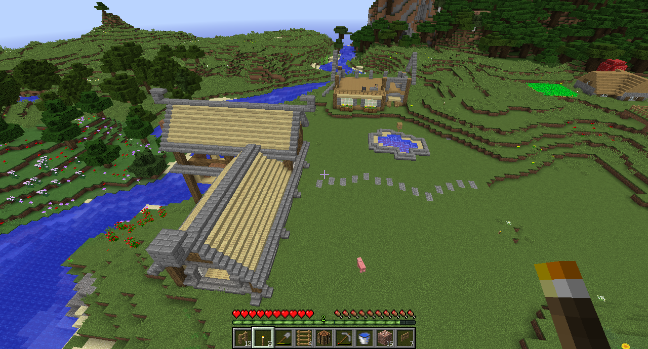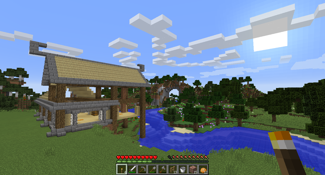 不过有条河绕着,在Minecraft里倒是比较好防御僵尸小白苦力怕什么的…