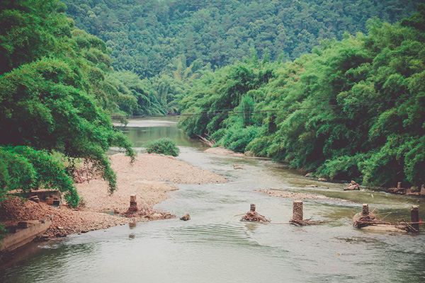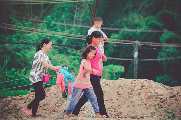 我喜欢拍那些村民跨过小木桥去赶圩的场景。